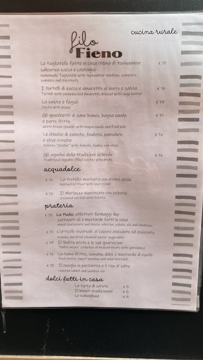 Welcome to Filo e Fieno, a hidden gem nestled in the picturesque heart of Orta San Giulio, Italy. Serving an authentic Italian menu, this delightful eatery captures the essence of traditional cuisine without the usual pizza fare. Here, you’ll find exquisite dishes featuring fresh local ingredients like polenta and porcini mushrooms, gloriously intertwined in handcrafted pastas such as tagliatelle and spaghetti.
