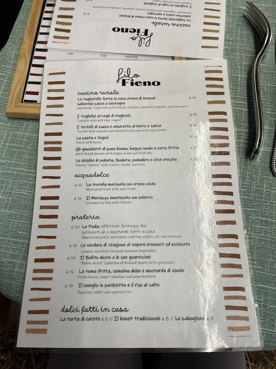 The ambiance at Filo e Fieno adds to the experience, with its quirky decor and warm atmosphere, making it the perfect spot for a relaxing meal. Friendly, attentive service enhances the charm, ensuring guests feel welcomed. Combine this with a thoughtfully curated wine list, and you have a recipe for a memorable dining experience. On your visit, be sure to savor the Roasted Rabbit with Saffron Fried Rice—a standout dish that showcases the restaurant's commitment to bold flavors and originality.